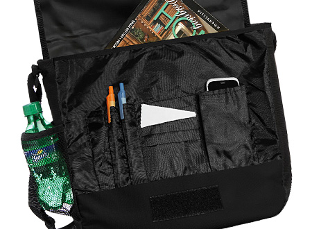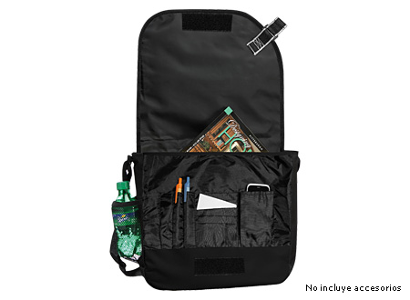 Maletín Portadocumentos de tela raquelada Polyester 600D modelo «Messenger», con solapa delantera, organizador interior y salida para auriculares.
